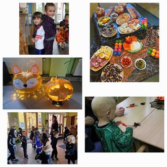 Beim Spinnenpusten mussten wir mit einem Strohhalm kleine Spinnen über den Tisch sausen lassen - wer schafft es bis ins Ziel? Beim Spinnenwettwickeln war Schnelligkeit gefragt - wer wickelt am schnellsten die Spinne auf. Und wer sich traute, durfte bei den Gruselgeschichten zuhören - ganz gemütlich mit Taschenlampe und Decke. Nach dem aufregenden Vormittag wurde es am Nachmittag besonders gemütlich. Das große Gruselkaffee öffnete seine Türen für Eltern, Geschwisterkinder und Großeltern. Auf dem schaurigen Buffet gab es viele leckere Köstlichkeiten, wie einen süßen Spinnenkuchen, bunte Monstermuffins, Grusel-Obstspieße und noch vieles mehr. Alles sah schaurig-schön aus und schmeckte natürlich wunderbar!