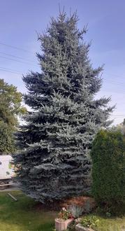 All diese Bäume werden dem Städtischen Bauhof von Grundstückseigentümern zur Verfügung gestellt, wie auch dieser große Baum im Bild rechts, der von Familie Schmidt vom Mittelweg stammt und jetzt als Weihnachtsbaum im Dorfzentrum des Ortsteils Polenz erstrahlt.