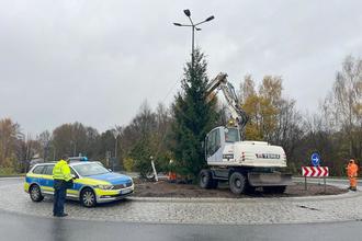 Aufstellen des Baumes am Kreisverkehr am 20. November 2023