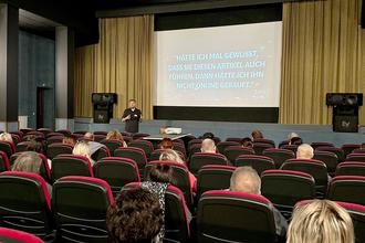 Johannes Albert bei seinem Vortrag im Kino Grenzland-Lichtspiele