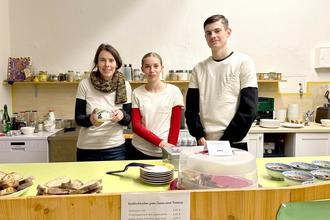 Viele Geschäfte öffneten an diesem Abend, wie das Unverpackt-Geschäft, v. l. Sabine Krüger, Christiana Krüger und Mika Nowack, welches leckere Kürbissuppe im Angebot hatte
