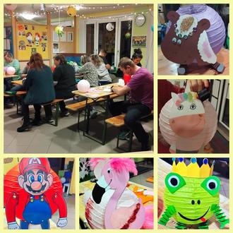 Nach einer herzlichen Begrüßung durch das Team gestalteten die Eltern mit viel Liebe, Fantasie und Kreativität wunderschöne Laternen, ob als Tiere, Comicfiguren oder in anderen bunten Formen. Zwischendurch konnten sich alle bei einer Tasse warmen Tee und etwas Knabbergebäck stärken.