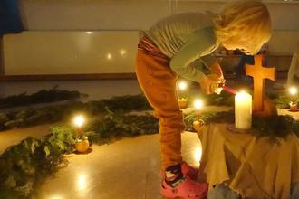Am Freitag vor dem ersten Advent ist es dann endlich so weit. Jede Gruppe darf nacheinander das „Adventsgärtlein“ besuchen. Der Raum ist erhellt von einer Kerze. Es duftet wunderbar nach Tannengrün und Uta spielt auf dem Klavier leise Weihnachtslieder. Eine festliche Atmosphäre liegt in der Luft und lädt uns ein, gemeinsam in Besinnlichkeit auf das Licht zu schauen.