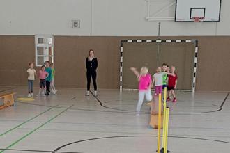 In der etwas kälteren Jahreszeit fahren unsere zwei großen Gruppen im Wechsel zur Turnhalle Niederottendorf zum Sport. Am 18.11.2024 waren die „Sammelbienen“ dorthin unterwegs. Früh gab es schon große Freude auf dem Weg zur Bushaltestelle, denn es fielen die ersten großen Schneeflocken in diesem beginnenden Winterhalbjahr. In der Turnhalle wurde das schnelle Umziehen geübt und schon starteten wir mit Staffelspielen. Im Anschluss spielten wir Curling, was den Kindern viel Spaß machte. Zum Abschluss wünschten sich alle das Spiel „Feuer, Wasser, Sand“. Unsere Sportstunde war viel zu schnell vorbei.