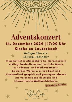An dieser Stelle möchten wir Sie zu unserem diesjährigen Adventskonzert am 14.12.2024, 17:00 Uhr, in die Kirche nach Lauterbach einladen!