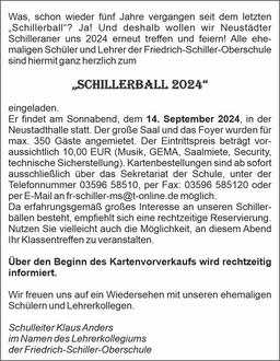 Ebenfalls an diesem Tag findet die „14. Regionale Ausbildungsmesse“, organisiert von unserer Schule, statt. So werden sich in der Aula wieder ca. 40 regionale Unternehmen und Bildungsträger der unterschiedlichsten Branchen mit ihren typischen Ausbildungsberufen präsentieren und somit um künftigen beruflichen Nachwuchs werben. Schüler der 8. bis 10. Klassen sowie deren Eltern sollten das Angebot nutzen, in dem sie sich bequem vor Ort über verschiedene Ausbildungsbereiche informieren. Ein Besuch lohnt sich also, am Sonnabend, dem 13. Januar 2024, zwischen 9:00 und 12:00 Uhr. Natürlich wird auch wieder für das leibliche Wohl gesorgt.