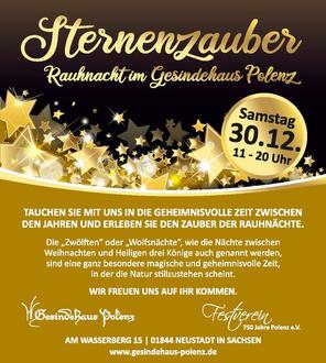 In den12 Nächten, der Julzeit, herrschte in vorchristlichen Jahren allgemein Frieden, die Waffen ruhten, der persönliche Streit wurde in der Öffentlichkeit geschlichtet (Mistelzweig). Das Julfest war in der vorchristlichen Zeit das Fest der Wintermitte, der Sonnenwende. Jul bedeutet Rad, Sonnenrad und es war üblich, am Heiligabend, mitten im Schnee große Holzräder anzuzünden, die oft mit Strohseilen umwickelt waren, damit sie besser brannten und einen Hügel oder Berg herunterrollen zu lassen. Man wollte damit die Natur beschwören, das Licht wieder wachsen zu lassen. In den unterschiedlichsten Gegenden gab es verschiedene Bräuche. Lassen Sie sich überraschen von unserer Rauhnacht, die am Sonnabend, dem 30.12. im Gesindehaus Polenz, ab 12:00 Uhr, stattfindet.