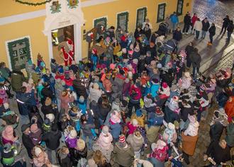 Am 3. Dezember lud die PTxTrimble GmbH mit zwei Weihnachtsponys vom Reiterhof Rößler alle Kinder zum Öffnen des Kalendertürchens ein. Dabei konnten alle die Lust hatten, eine Runde auf dem Markt drehen und natürlich war auch der Weihnachtsmann mit da, dem so manches Kind ein Gedicht aufsagte oder ein Lied vorsang.