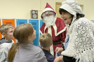 Doch damit war der Überraschungstag noch nicht vorbei. Im Anschluss stattete der Nikolaus gemeinsam mit seiner Frau allen Kindern einen Besuch ab, organisiert durch den engagierten Schulförderverein. Jedes Kind erhielt ein besonders liebevolles Geschenk: ein mit dem Schullogo bedrucktes Halstuch sowie einen leckeren Pulsnitzer Pfefferkuchen-Lolli, der vom Hort gesponsert wurde. Ein herzlicher Dank gilt dem Schulförderverein, vor allem dem Nikolaus und seiner Begleitung sowie allen Beteiligten, die zu diesem gelungenen Nikolausfest beigetragen haben.
