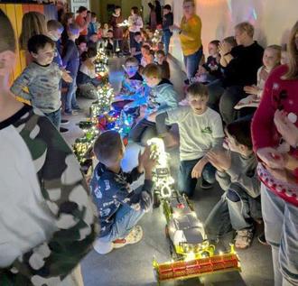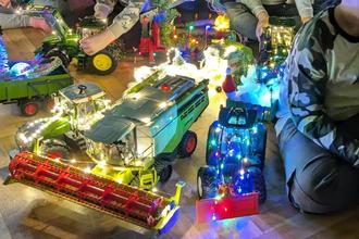 Aufgeregt und voller Vorfreude trafen sich am Freitagnachmittag über 40 Hortkinder (auch einige Mädchen warten mit dabei!) mit ihren wunderbar geschmückten Fahrzeugen im Musikzimmer unserer Grundschule. Zum zweiten Mal sollte die Lichterfahrt stattfinden. Die Jungs aus der Klasse 4b hatten alles gut vorbreitet. Friedrich und Benjamin schrieben die Einladungen. Marcio baute auf den Traktor seines Bruders die Rundumleuchte, Paul brachte seine besondere Hupe mit und Janis kümmerte sich um die Musik. Liebevoll und mit tollen Ideen waren die Traktoren, LKWs, Baufahrzeuge und sogar ein Flugzeug für diesen Tag dekoriert. Was für ein grandioser Moment, als an den Fahrzeugen die Lichter angingen und es überall funkelte und glitzerte!