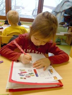 Neben den Zahlen trainierten wir auch wichtige feinmotorische Fähigkeiten, indem wir mit der Schere geschnitten und Schleifen gebunden haben. Beim Schleifenbinden hilft uns der selbstgebastelte Schleifentrainer aus einer Eierpappe. Die Kinder sind begeistert, ihre Fähigkeiten zu verbessern und stolz auf ihre selbstgemachten Kunstwerke. Sogar einen Scherenführerschein und eine Urkunde für den Schleifenkönig/die Schleifenkönigin gibt es in den Vorschulhefter rein.