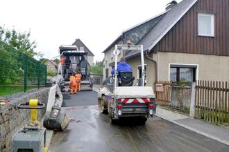 Asphalteinbau auf der Talstraße im Ortsteil Rugiswalde am 28. August 2023