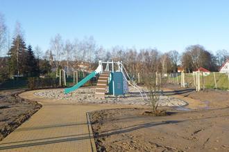 Spielplatz auf der Heinrich-Hertz-Straße nach der Bepflanzung im Dezember 2023
