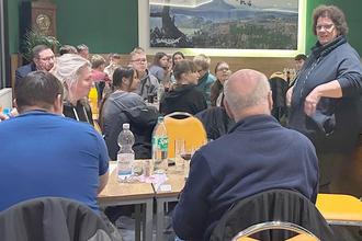 Kathrin Vogel (rechts) gegrüßt die Anwesenden zum ersten Jugendstammtisch