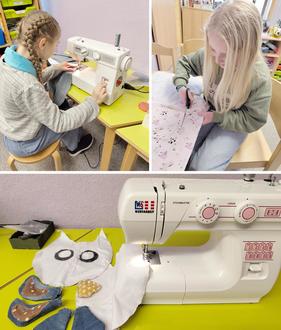 Schon fast traditionell lehrt Frau Rettschlag ihren Hortkindern der Klasse 4a das Nähen mit Nadel und Faden sowie an der Nähmaschine. Mit viel Geduld und fachkundiger Anleitung führt sie die Kinder Schritt für Schritt an das textile Gestalten heran. Dabei erfahren die Viertklässler, wie aus einer eigenen Idee ein fertiges Produkt entstehen kann. Am Anfang steht der Entwurf: Die Kinder überlegen, ob sie ein Kuscheltier oder ein Kuschelkissen nähen möchten. Anschließend wählen sie passende Stoffe aus und ergänzen ihre Werke mit Zubehör wie Knöpfen, Herzen oder anderen Verzierungen. So entstehen individuelle und liebevoll gestaltete Stücke. Neben handwerklichen Fertigkeiten lernen sie auch wichtige persönliche Kompetenzen. Der Umgang mit der Nähmaschine erfordert Konzentration, Genauigkeit und ein strukturiertes Vorgehen. Nicht immer läuft alles reibungslos - manchmal reißt der Faden oder ein Arbeitsschritt muss wiederholt werden. Die Mädchen und Jungen lernen dabei, mit Schwierigkeiten umzugehen, geduldig zu bleiben und nicht aufzugeben.