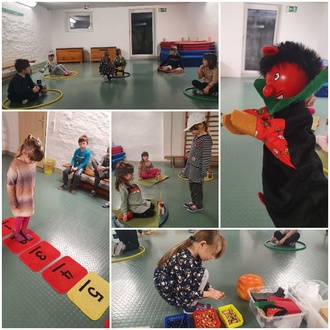 Die Freude bei allen Kindern war groß, denn sie wissen, dass es nun nicht mehr lange dauert, bis sie ein Wackelzahnknirps werden und in die Vorschulgruppe kommen. Zu Beginn der Zahlenschule werden die Zahlenwohnungen der Zahlen 1 bis 5 aufgebaut. Zu diesen gelangen die Knirpse auf dem Zahlenweg. Zuletzt besuchen wir die Zahlenländer. Aber aufgepasst … zwischendurch bekommen sie Besuch vom Zahlenteufel, der sehr gern Zahlen vertauscht, verdreht oder versteckt.