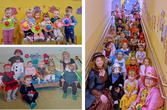Unsere „großen“ Krippenkinder waren mit viel Eifer beim Basteln lustiger Clowns vor dem Fasching dabei und zeigten sie voller Stolz. Als es dann endlich so weit war, herrschte eine super Stimmung im Bienenstock. Alle kleinen und großen Bienchen kamen wunderschön verkleidet in die Kita. Neben herzhaften Essen zum Frühstück gab es auch Donats und Pfannkuchen, die eine Überraschung von Arnes Eltern waren. Vielen lieben Dank dafür! Bei unseren größeren Kindern wurde wild getanzt, die Erzieherinnen führten lustige Spiele mit ihnen durch, eine Polonaise zog durchs ganze Haus. Alle feierten ausgelassen und hatten viel Spaß.