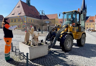Neben der schönen Osterdekoration und den Frühblühern in der Innenstadt ist der Kreisverkehr wieder zu einem „Hingucker“ geworden. Die Kreativität des Städtischen Bauhofs lässt keine Wünsche offen und jedes Jahr wird eine neue Idee umgesetzt. Alle Einwohner, Besucher und auch die Vorbeifahrenden können sich daran erfreuen. Ein großes Dankeschön dafür.