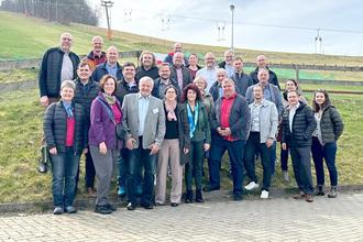Bürgermeisterinnen und Bürgermeister sowie SKSD-Mitarbeiterinnen am Skihang Rugiswalde