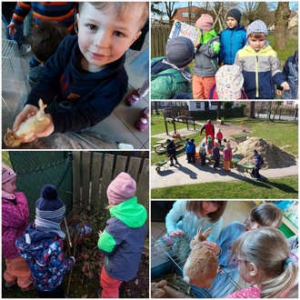 Der Osterhase war natürlich auch im Knirpsenland und hat für jeden Knirps eine kleine Überraschung und für jede Gruppe ein Buch. Am Gründonnerstag besuchte uns Herr Mutscher.