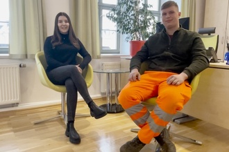 Unsere beiden Azubis Svenja Forgber und Jonas Rother beim Videodreh im Bürgermeisterzimmer