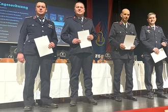 Neu, kommisarisch bestellte Ortswehrleitungen, v. l. die Kameraden Sören Hohlfeld, Marko Beyer (Polenz) Mathias Hänsel und Marcel Rugies (Neustadt)