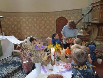 Als kleines Highlight waren die Kinder der Fuchsgruppe in der Kirche Dürrhennersdorf und haben mit Ihren Gaben den dortigen Erntedanktisch geschmückt. Danach lauschten sie einer spannenden Geschichte über das Brotbacken, von der Saat bis zum fertigen Brot, und durften neugierig die Kirche erkunden.
