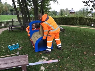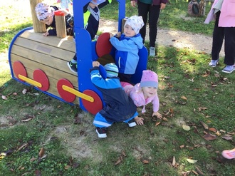Am 26.09.24 konnten wir endlich unsere Spieleisenbahn bestaunen. Sie wurde gleich vom Bauhof aufgebaut, aber leider spielte das Wetter nicht mit. Deshalb wurde die Eisenbahn erst am 27.09.24 von uns offiziell eröffnet. Der Garten wurde schön geschmückt und nachdem die Kinder das feierliche Band durchgeschnitten hatten, wurde die neue Hauptattraktion im Krippengarten gleich ausprobiert.