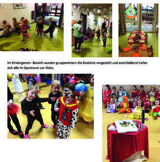 Im Kindergarten-Bereich wurden gruppenintern die Kostüme vorgestellt und anschließend trafen sich alle im Sportraum zur Disko.