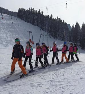 Am nächsten Morgen ging es auch schon nach Österreich in das Skigebiet Jungholz. Am Vormittag haben wir auf dem Übungshang den Schneepflug und die ersten Kurven geübt. Nach dem Mittag ging es mit dem Sessellift auf die erste blaue Piste. Diejenigen, die es sich noch nicht getraut haben, blieben mit einer Lehrerin auf dem Übungshang und haben dort weiter geübt.