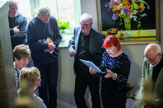 Zur Vernissage kamen sehr viele Besucher. Wolfs Ehefrau Anette führte sehr unterhaltsam mit ihrer Laudatio in die Ausstellung ein.