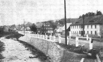 Die an der regulierten Spree hinführende neue Umgehungsstraße der Reichsstraße in Neusalza-Spremberg am Kretscham.