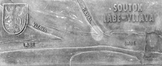 Zusammenfluss: Auf dem Foto -Einmündung des Moldau-Kanals in die Elbe. Der direkte Zusammenfluss befindet sich etwas weiter im Hintergrund (siehe Orientierungstafel).