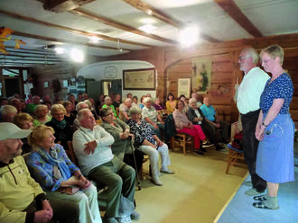 • Erstmals organisierte das Team des „Reiterhauses“ gemeinsam mit den „Mundartigen“ am Freitag, dem 16. Juni, eine besondere Veranstaltung im Haus und in der Blockstube des Museums. „Zun Obde an Museum“, war von 19 – 23 Uhr das Objekt geöffnet. Birgit Seifert und Hans-Werner Krause spielten hier das Mundartstück „’s biese Uhre“ von Schriftstellerin Annelies Schulz.