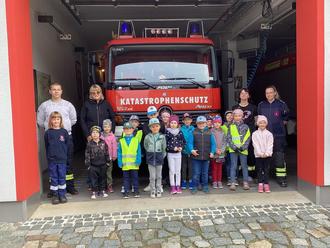 So lernten wir unter anderem die Bibliothek der Stadt kennen, die uns Frau Wittwer vorstellte. Zum Erntedank haben wir mit Frau Lachmann die geschmückte Kirche bewundert und das größte Instrument der Welt kennen gelernt, die Orgel. Auch die Gemeindepädagogin begleitete uns das ganze Jahr hindurch und erklärte uns mit Puppe Emma alle kirchlichen Feste. Die Bundespolizei besuchte uns und wir erfuhren mit Toni dem Bären, wie wir uns an Bahnanlagen und im Zug verhalten sollen. Wir besuchten den Bahnhof und sahen uns alles live an. Danach fuhren wir mit dem Zug nach Wilthen und überquerten mit der Bundespolizei ordnungsgemäß die Gleisanlagen. Im Zug verlangte der Schaffner unsere Fahrkarten. Er zeigte und erklärte uns sogar das Führerhaus des Zugführers. Im Mai besuchten wir die Feuerwehr die uns mit einem leckeren Feuerwehrfrühstück empfing. Wir lernten, wie wir uns im Brandfall verhalten und haben das Feuerwehrdepot und die Feuerwehrautos genau inspiziert.