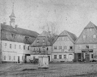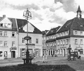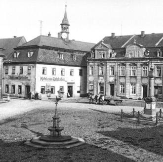 Auf dem Obermarkt wird ein gußeiserner Lauf-Brunnen mit Beleuchtung errichtet. Sein Kandelaber hatte 3 Laternen. Dieser Brunnen war ein Geschenk der Fa. Leberecht Hünlich (Garnhandel). Der Anlaß für diese Spende war das 50-jährige Bestehen der Firma. Die Einzelteile für den Brunnen wurden im Eisenwerk Lauchhammer angefertigt.
