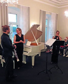 Die zahlreich erschienenen Gäste erlebten wieder einen ganz besonderen Abend. In der Besetzung Klarinette (Antonia Lorenz), Fagott (Philipp Zeller und Klavier (Isabel von Bernstorff) brillierten drei junge, sympathische Künstlerinnen und Künstler. Bewundernswert die professionelle tadellose und virtuose Beherrschung der Instrumente, gepaart mit großem Einfühlungsvermögen in die gut ausgewählten Stücke. Ein Ohren- und Augenschmaus der Sonderklasse.