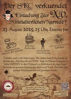 Doch nun sind wir im August angekommen und das heißt, schon bald freuen wir uns Euch zur 15. mittelalterlichen Narredey am 23.08.2025 in unserem schönen Hofepark Schönbach begrüßen zu können.