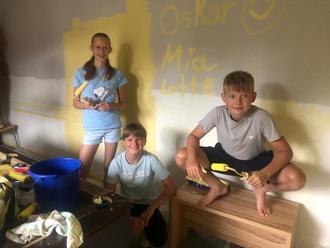 Ja, wer hätte das gedacht, dass man selbst in den Ferien Spaß in der Schule haben kann und Spaß hatten wir tatsächlich alle. Ich möchte mich recht herzlich bei meinen kleinen Helfern bedanken, die gemeinsam mit Jenny und mir, dem Schulclub ein neues Antlitz gaben, trotz Hitze keine Schwäche zeigten und gestrichen haben wie die Weltmeister.
