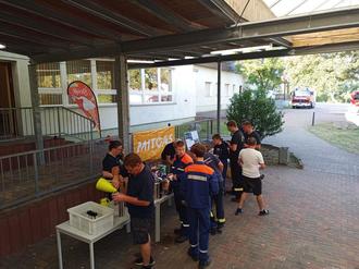 Auch die feuerwehrtechnische Ausbildung sollte an diesem Wochenende nicht zu kurz kommen. Durch den Verbandsjugendwart des Feuerwehrverbandes Philipp Koch wurde die Jugendflamme der Stufe 3 abgenommen. Hier mussten die Jugendlichen ihr Wissen in den Bereichen Technik und Erste Hilfe unter Beweis stellen. Auch sportliche Leistungen sowie soziales, ökologisches und kreatives Engagement waren Bestandteil der Abnahme. Eine besondere Leistung für die Jugendlichen - ihr könnt stolz auf euch sein!