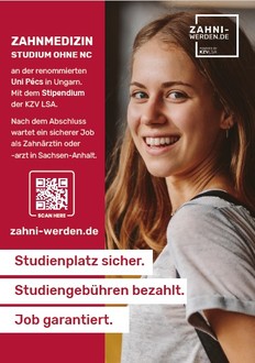 Viele junge Menschen träumen von einem Studium der Zahnmedizin, doch oft scheitert dieser Wunsch am Numerus clausus. Das Stipendienprogramm der Kassenzahnärztlichen Vereinigung Sachsen-Anhalt (KZV LSA) eröffnet hier neue Chancen: Es ermöglicht ein Zahnmedizinstudium an der renommierten Universität Pécs in Ungarn – auch ohne perfekte Abiturnote und mit vollständiger Übernahme der Studiengebühren über die gesamte Regelstudienzeit. Der Studiengang wird komplett in deutscher Sprache angeboten, der Abschluss ist EU-weit anerkannt. Nach dem Studium kehren die geförderten Studierenden nach Sachsen-Anhalt zurück und leisten hier einen wichtigen Beitrag zur zahnärztlichen Versorgung. Bereits 46 junge Menschen nutzen diese Chance und studieren Zahnmedizin mit Unterstützung der KZV LSA. Im Wintersemester 2026/27 startet der 5. Förderjahrgang. Bewerbungen sind vom 1. bis 28. Februar 2026 möglich. Interessierte sowie Eltern, Lehrkräfte und Praxen können sich online informieren unter www.zahni-werden.de.