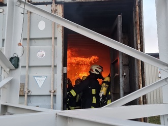 Des Weiteren wurde für die Atemschutzgeräteträger ein Szenario im Übungscontainer simuliert, welchen die Feuerwehr Aken im letzten Jahr zur Aktion vom MDR Frühlingserwachen errichtet hatte. Dabei hieß das Einsatzstichwort "Personensuche - 2 vermisste Personen in Gebäude". Der Übungscontainer, welcher mit Möbeln ausgestattet ist, wurde mittels Nebelmaschine auf sogenannte Nullsicht gebracht, sodass die Kameraden unter realistischen Einsatzbedingungen die Personenrettung im Brandraum simulieren konnten. Nachdem die Trupps, wobei ein Trupp immer aus 3 Atemschutzgeräteträgern bestand, die Übung absolvierten, ging es für die 20 Kameraden noch in den sogenannten Brandübungscontainer. Hier wurde ein Feuer gezündet, um die Entwicklung eines Brandes von der Entzündung bis zum Vollbrand ohne den üblichen Einsatzstress zu verfolgen.