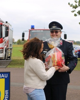 Nachdem der offizielle Festappell beendet war, konnte sich die Technik der Fahrzeuge angeschaut werden. Außerdem unterstützte uns die Feuerwehr Aken mit ein paar Fahrten mit der Drehleiter bis zum Kaffee.