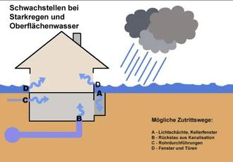 im Zeichen des Klimawandels sind Naturkatastrophen nicht auszuschließen. Extreme Trockenheit, Stürme, Starkregen und Hagelschlag werden auch bei uns zunehmen. Überflutungen der Grundstücke und Keller durch Starkregen ist auch in unserer Region nicht auszuschließen. Deshalb sollten Grundstückseigentümer über eine Elementarschadenversicherung nachdenken. Heftige Gewitter, langanhaltender Regen können die Kanalisation zum Überlaufen bringen. Tiefliegende Hauseingänge, Keller und Sauterrainräume laufen dann womöglich voll, und das Schmutzwasser hinterlässt Zerstörungen an Wänden, Böden und Einrichtung. Für Schäden infolge eines solchen Staues haften Eigentümer in der Regel selbst, es sei denn, sie sind extra dagegen versichert. Das Risiko wird in der Hausrat- und Wohngebäudeversicherung nicht automatisch mit abgedeckt, sondern es muss explizit innerhalb einer Elementarversicherung abgesichert werden.