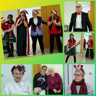 Den Nachmittag rundete Heike Feurich mit ihren Covergirls ab. Diesmal überraschten sie uns mit einem Potpourri passend zur Weihnachtszeit. Durch das Programm führte souverän wie immer, Claudia Lüttich. Dafür lieh ihr Heino mit dem „Schneewalzerlied“ seine Stimme. Klein-Joshua und seine Mama Vivien wussten natürlich von der Gruppe Großstadtengel, dass der Weihnachtsmann tanzt – aber wie! Mike-Leon Grosch sang für uns – oder nein – er gab Nicole seine Stimme für „Leise rieselt der Schnee“, was zwar an dem Nachmittag noch nicht der Fall war, sicher jedoch unser aller Stimmung noch weiter gehoben hätte. Andrea Berg war wohl die Lieblingssängerin von Heike. Mit Weihnachtsliedern von ihr wie „Dezembertraum“, „Süß singt der Engelchor“ oder „Fröhliche Weihnachten“ sah man in viele ernste, nachdenkliche Gesichter. Joshua war das aber sowas von egal. Für ihn war Andrea Berg doch seine Oma, was er laut von ihr bestätigt haben wollte. Das Singen bekannter Weihnachtslieder gemeinsam mit uns war sehr schön. Das anschließende Abendbrot, das gesponserte, eine Roulade und Klöße mit Rotkohl waren ein Gedicht! Organisatorin Sigrid Beck und allen Beteiligten, die uns den Nachmittag gestaltet und möglich gemacht haben, ein großes Dankeschön!!!