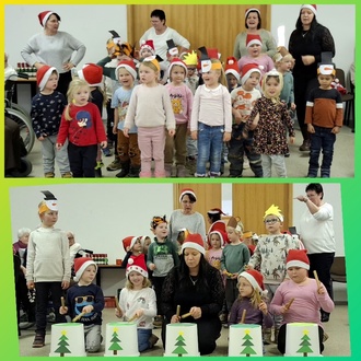 Weihnachtlich eingestimmt wurden wir ja schon im November mit dem Basteln eines Adventsgesteckes. Die Fortsetzung erfolgte nun am 11. Dezember mit einem vollgepackten Weihnachtsprogramm. Organisatorin Sigrid Beck musste aufgrund der Geräuschkulisse wiedermal lauter als laut den „Fahrplan“ für den Nachmittag verkünden. So erfuhren wir auch, dass wir aufgrund der großzügig ausgefallenen Herbstspendensammlung ein spendiertes Abendessen bekommen würden. Unsere Geburtstagskinder bekamen wie immer ihr musikalisches Ständchen. Schon während des Kaffeetrinkens präsentierte unsere Kita ein tolles Programm. Unbefangen und ohne Hemmungen spulten sie ihren Auftritt ab. Einige Knirpse nutzten schnell noch die Gelegenheit, der gerade entdeckten Oma „Guten Tag!“ zu sagen. Wenn auch das „auf die Pauke haun“ manchmal nicht so rhythmisch klang – kein Problem, es wurde einfach weggetrommelt. Der „Tanz vom Schneemann“ oder „Guten Tag, ich bin der Nikolaus“ und überhaupt die Freude am Singen und Tanzen übertrug sich voll auf uns. Die kleinen Künstler bekamen viel Beifall. Wir freuen uns schon auf den nächsten Besuch!