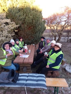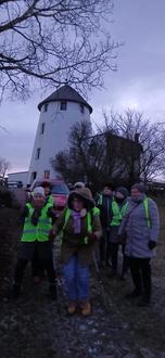 Am 02.01.2026 fiel eine kleine Ankündigung für den 3. Januar in der MZ auf: "Winzerglühwein an der Feuerschale", eine Einladung auf den Mühlberg nach Crüchern zum Neujahrsglühen. Also ran an die Telefone und Mitstreiter gesucht, wer hat Lust und so kurzfristig Zeit. Natürlich wird zum Mühlberg gewandert, nach den Festtagen und dem vielen guten Essen, kann ein bisschen Bewegung nur guttun. Pünktlich am Samstagnachmittag trafen sich dann auch 8 Frauen, dem Wetter entsprechend warm angezogen, zur kleinen Wanderung zum Mühlberg. Irene Witzki versorgte uns noch mit den lindgrünen Warnwesten des Osternienburger Landes und der Marsch konnte losgehen.