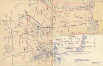 So weit der Zeitungsbericht. Aber welche Scheune war gemeint? An der Straße nach Drosa stand 1928 noch eine Scheune, die 1945 von den amerikanischen Truppen, von Drosa kommend, in Brand geschossen wurde. Diese Scheune stand am Abzweig Scharwegk, in der Angerbreite. Die Blechscheune steht in der Drecksbreite. Gegenüber befindet sich die Stangenbreite. Kantor Kranz hat eine Skizze erstellt mit den alten Flurnamen, die für interessierte Leser beigefügt wird.