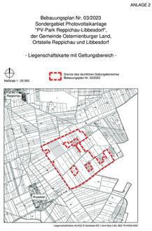 Der Geltungsbereich des Bebauungsplanes Nr. 03/2023 Sondergebiet Photovoltaikanlage „PV-Park Reppichau-Libbesdorf“ der Gemeinde Osternienburger Land, Ortsteile Reppichau und Libbesdorf befindet sich