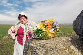 Ich komme natürlich im Kostüm der mittelalterlichen Marktfrau.